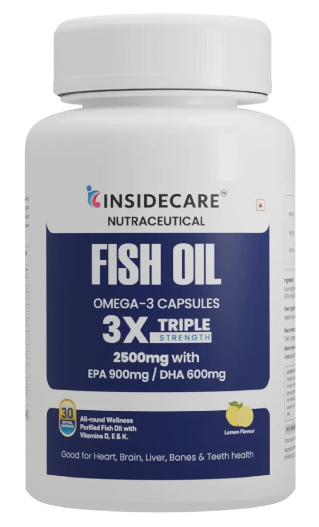 INSIDECARE 3X Omega 3 Fish Oil Capsules, Your Daily Dose of Purity, Strength & Health